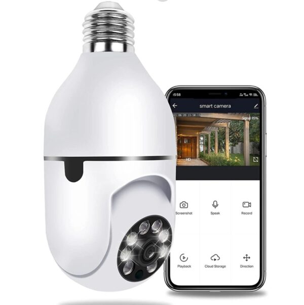 Com um design inovador em formato de lâmpada, ela passa despercebida enquanto mantém tudo sob vigilância!
